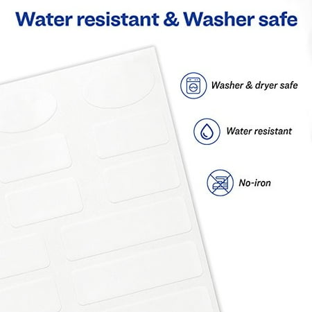 AVERY No Iron Clothing Labels, Washer & Dryer Safe, Writable Fabric ... This item: AVERY No Iron Clothing Labels, Washer & Dryer Safe, Writable Fabric Labels, 54 Labels, 1 Pack (40720), White, 1/2"x1-3/4" $15.02 Sharpie Rub-A-Dub Laundry Marker, Pack of 3 (SN31101PP-2) $28.66 Avery No Iron Fabric Labels, 0.5" x 1.75", Matte White, Handwrite Only, 2 Pack, 108 Labels Total (32130) $27.11