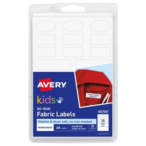 Avery No-Iron Fabric Name Labels, Summer Vibes Preprinted Designs ... Avery No-Iron Kids Clothing Labels, Washer & Dryer Safe, Writable Fabric Labels, 45 Daycare Labels, 1 Pack (40700), White 6,760 2 offers from $8.26 All Purpose No-Iron Kids Clothing Labels, Self-Stick Write-On Fabric Labels for Camp, School, Daycare, Nursing Care, Toys, Organizing, Washer & Dryer Safe, Pack of 80 2,094 in All-Purpose Labels