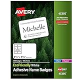 Avery self adhesive name tag labels white 2 1 3 x 3 3 8 400 pack 5395. Amazon.com : Avery Pin Style Top-Loading Name Badges, 2.25 x 3… Avery Flexible Name Tag Stickers, White Rectangle Labels, 400 Removable Name Badges, 2-1/3" x 3-3/8" (5395) ... Create professional name tags quickly and easily from the convenience of your home or workplace with this pack of 100 pin name badges. These 2.25" x 3.5" ID badges feature a no-snag pin to securely hold badges in place, making them ... Avery Label Sizes Search | Find The Right Size | OfficeCrave.com Avery Printable Self-Adhesive Removable Color-Coding Labels, 0.75" dia., Assorted Colors, 24/Sheet, 42 Sheets/Pack (05472) ... Avery Vibrant Laser Color-Print Labels w/ Sure Feed, 1 1/4 x 2 3/8, White, 450/Pack (6871) Avery White Dissolvable Labels w/ Sure Feed, 1 1/4 x 2 3/8, White, 90/PK (4224) ... Avery PermaTrack Durable White Asset Tag ...