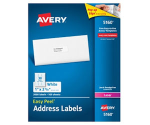 Standard Labels at Office Depot OfficeMax Office Depot® Brand Inkjet/Laser Address Labels, Rectangle, 1" x 2 5/8", White, Pack Of 3,000. $39.99 / pack. Qty. Free Store Pickup in 20 Minutes. Compare. Item 574566. Avery® Easy Peel® Address Labels With Sure Feed® Technology, 8160, 1" x 2 5/8", White, Box Of 750.